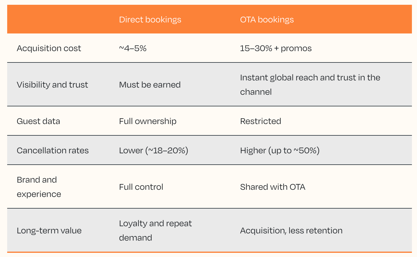 The most profitable hotels don't strictly choose one between OTAs and direct bookings. They use both, strategically.